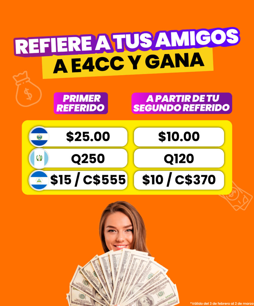 4. Después de que tu amigo se inscriba, vas a una sucursal de E4CC y solicitas tu recompensa.