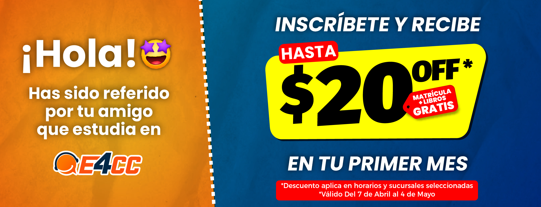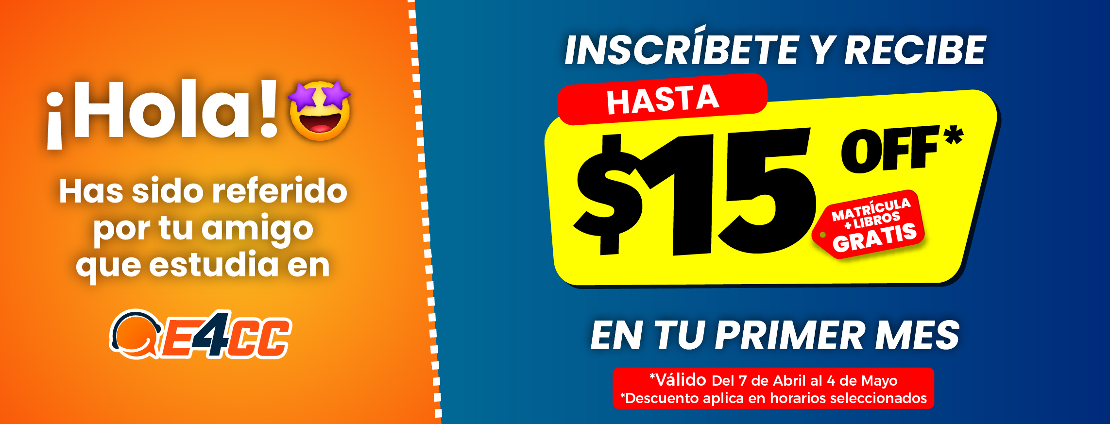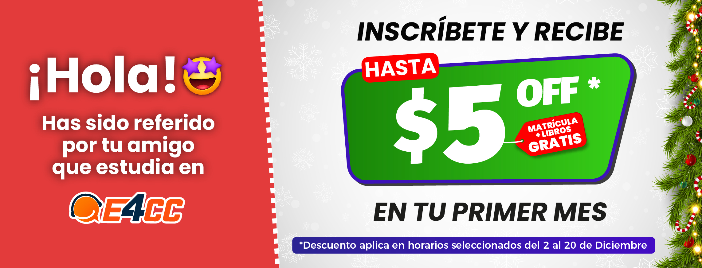 3. Te inscribes a Clases Presenciales. (NO olvides mencionar el nombre completo de tu amigo que te ha referido y mostrar el cupón para que recibas el descuento).