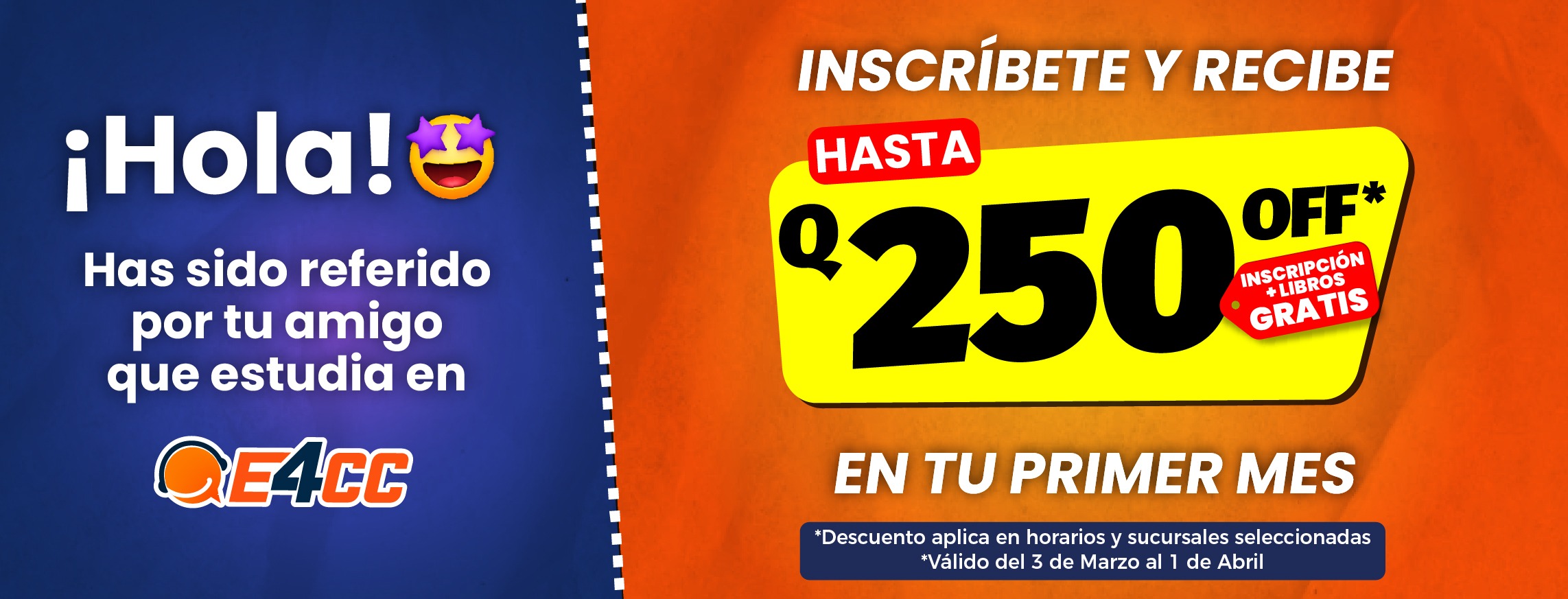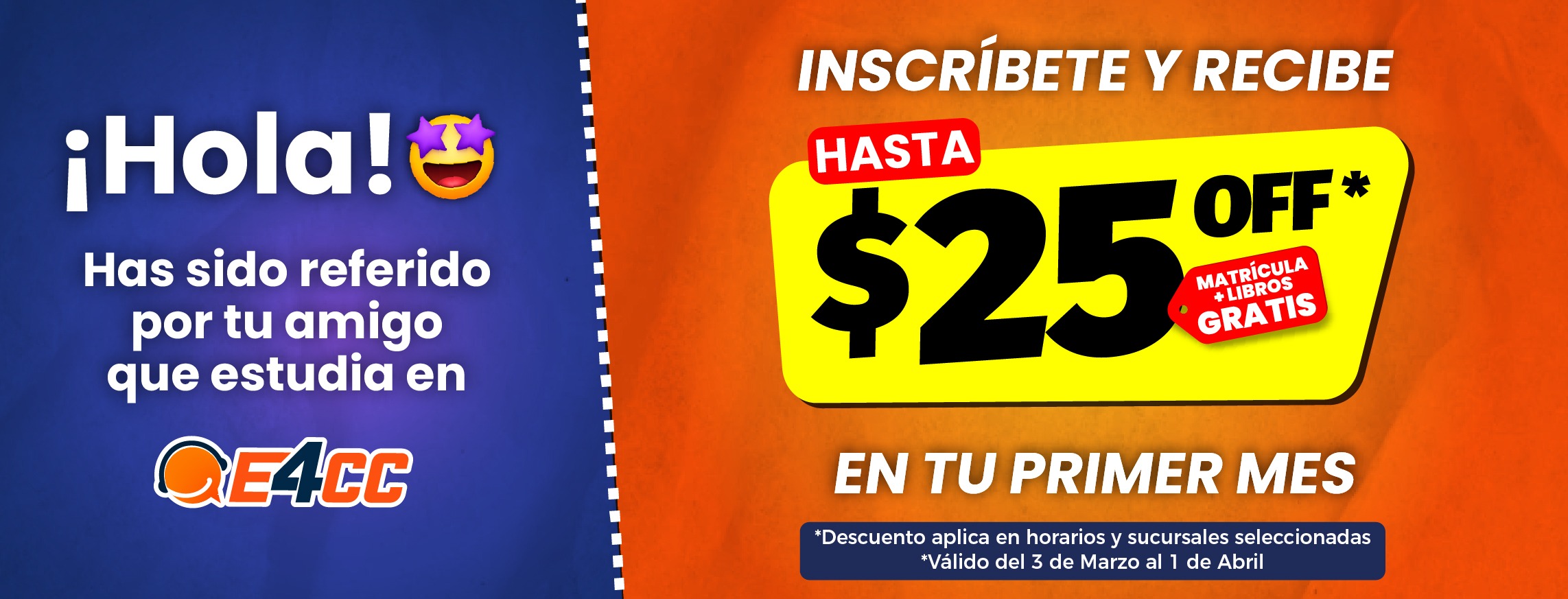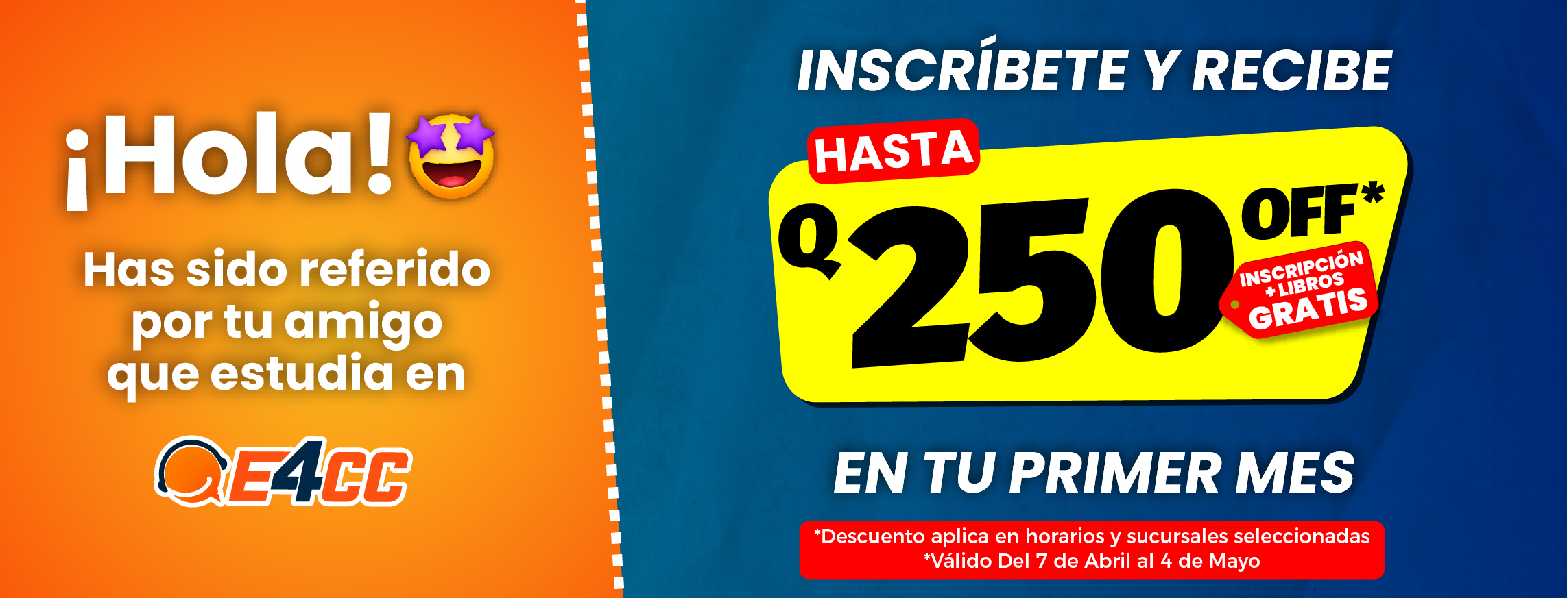 3. Te inscribes a Clases Presenciales. (NO olvides mencionar el nombre completo de tu amigo que te ha referido y mostrar el cupón para que recibas el descuento).
